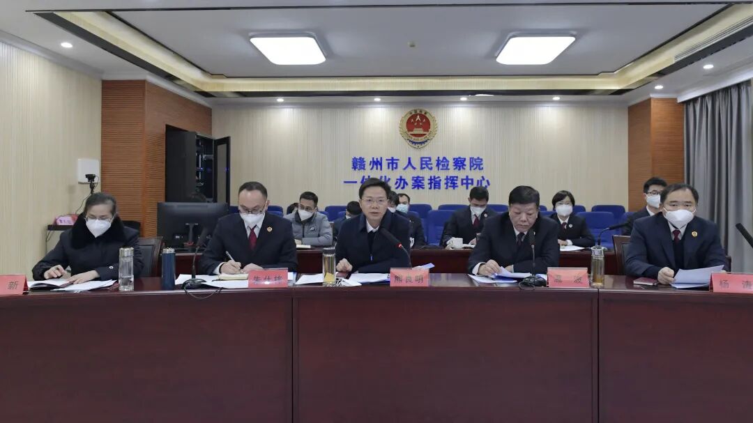 1月9日,为深入学习贯彻党的二十大会议精神,落实全国检察长会议精神,扎实推进最高检、省检察院公益诉讼工作部署落地,找准服务市委“三大战略、八大行动”工作大局切入点,坚持以院党组提出的“争第一、创一流、走前列”工作目标,抓早抓好2023年全市公益诉讼检察工作,赣州市检察院运用一体化办案指挥中心平台召开了全市检察机关公益诉讼工作推进会。市检察院党组书记、检察长熊良明出席会议并讲话,各基层院检察长、分管院领导及两级院公益诉讼部门全体干警,市院蓉江新区检察室干警参加了视频会,会议由二级高级检察官温波主持。