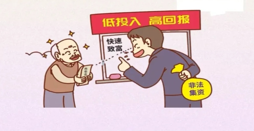 这类诈骗手段多以投资养老保险项目、投资开办养老院、购买养老公寓、入股养生基金、承诺定期返点、高额分红等方式,诱骗老年人参与非法集资或非法吸收公众存款。