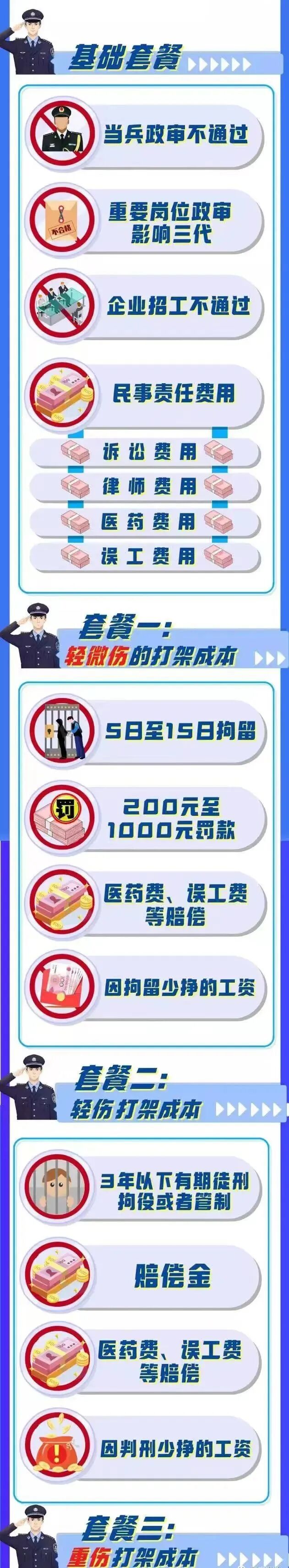 “一言不合就翻脸动手” 、“友谊的小船说翻就翻”、 “明明可以退一步海阔天空,偏偏要大动干戈”,有时可能因为一句话或一点小事而引发打架斗殴,最终酿成大祸。这就告诫着我们遇事要冷静,一时冲动用暴力解决问题,结果我们也可想而知,施暴者们都得到了应有的惩戒。但如果我们遇到了施暴行为,也一定要学会用法律保护自己,维护自己的权益。切莫用不正当手段给予报复,俗话说得好:“打输住院,打赢坐牢”。
