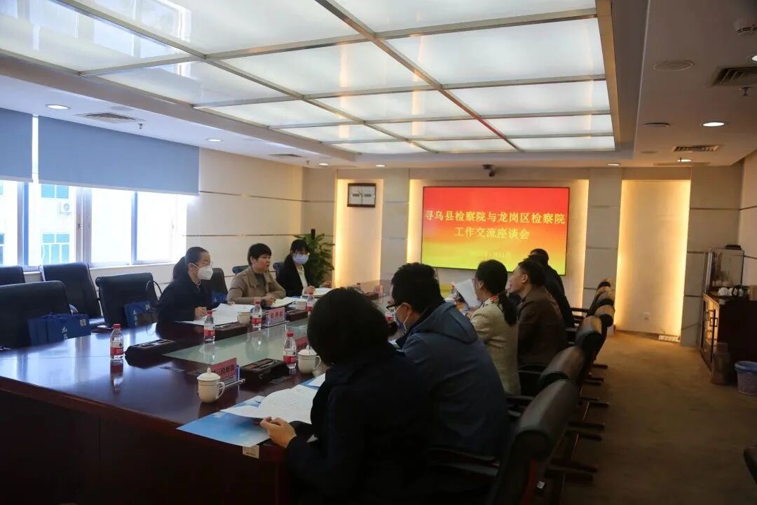 对标先进,主动融湾。为推动对口支援合作,1月31日,寻乌县县委常委、政法委书记严考泉率政法各单位赴深圳与龙岗区政法各单位开展座谈对接。会后,寻乌县人民检察院党组书记、检察长王泉花一行赴龙岗区人民检察院对接交流对口支援合作工作,龙岗区人民检察院党组成员、副检察长付正权、党组成员、政治部主任彭卫萍及相关科室负责人参加。