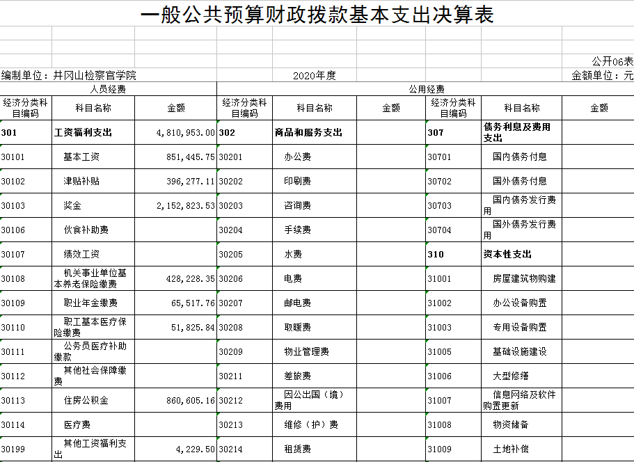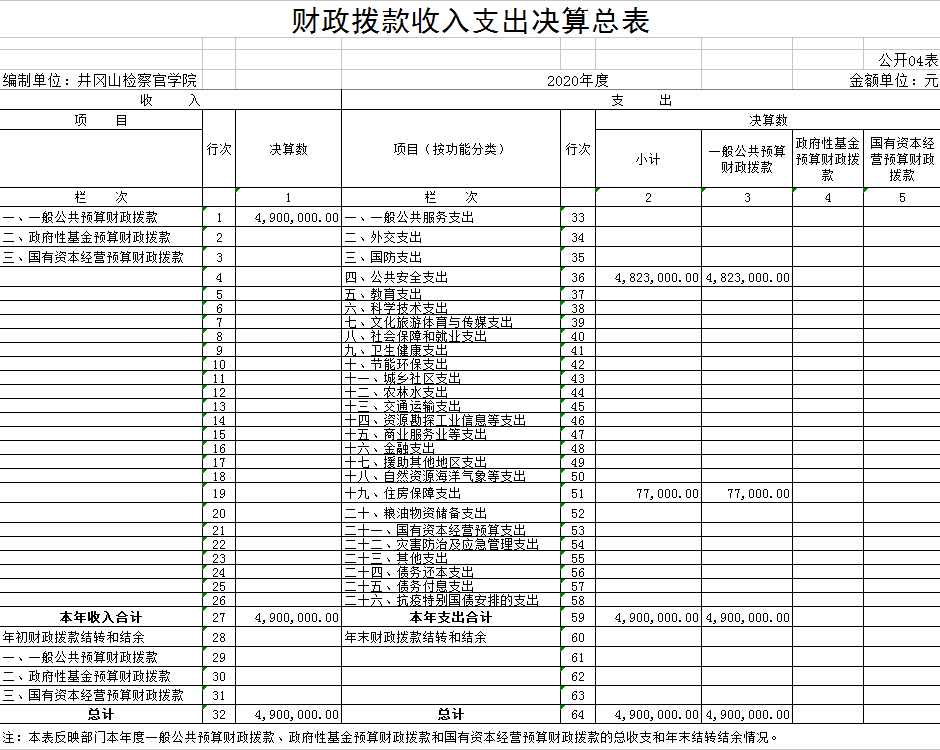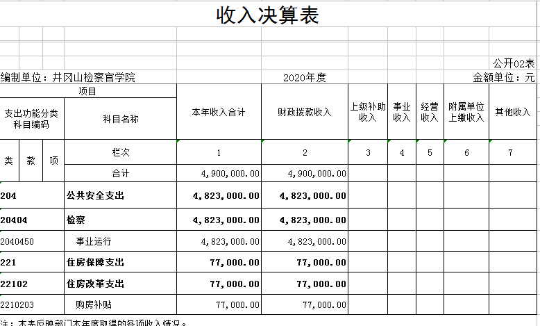 井冈山检察官学院2020年决算公开说明
