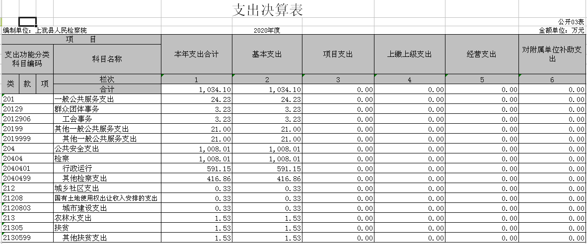 上犹县人民检察院2020年度部门决算