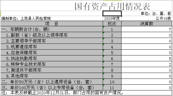 截止2020年12月31日,本部门(单位)国有资产占用情况见公开10表《国有资产占用情况表》。其中车辆中的其他用车无。