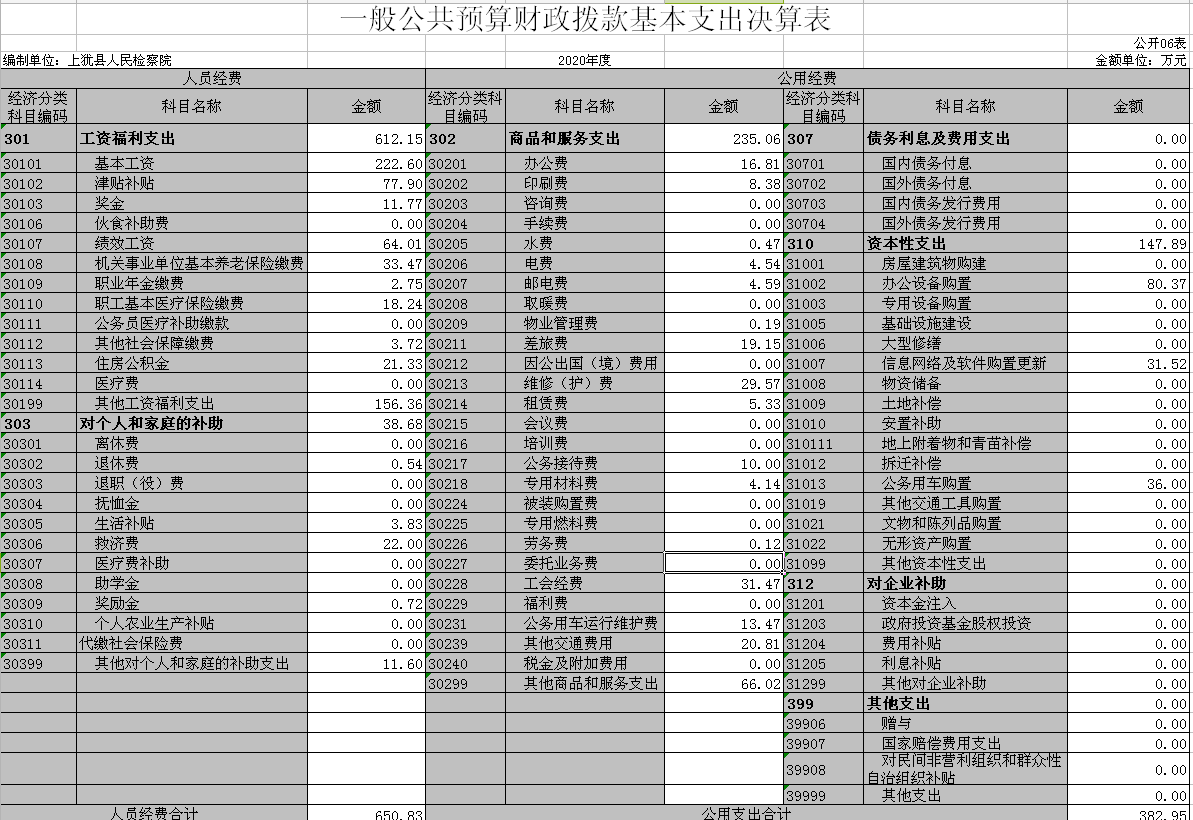 本部门2020年度财政拨款本年支出年初预算数为 1023.3 万元,决算数为 1034.1 万元,完成年初预算的 101.06 %。其中: