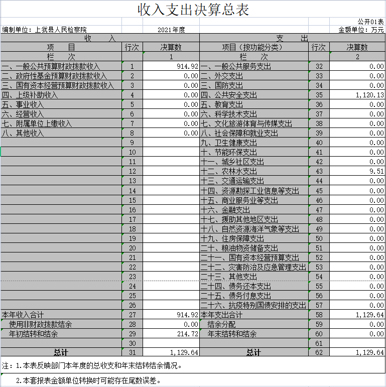 纳入本套部门决算汇编范围的单位共1个,包括:上犹县人民检察院。
