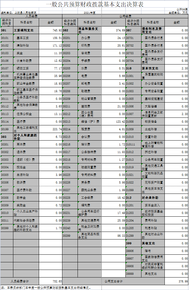 第二部分 2021年度部门决算表