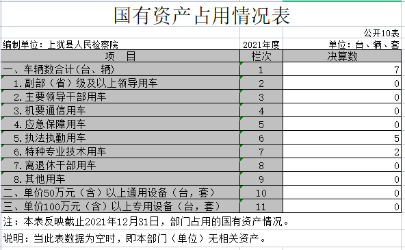 截止2021年12月31日,本部门(单位)国有资产占用情况见公开10表《国有资产占用情况表》。我院共有车辆7辆,其中执法执勤用车5辆,特种专业技术用车2辆。
